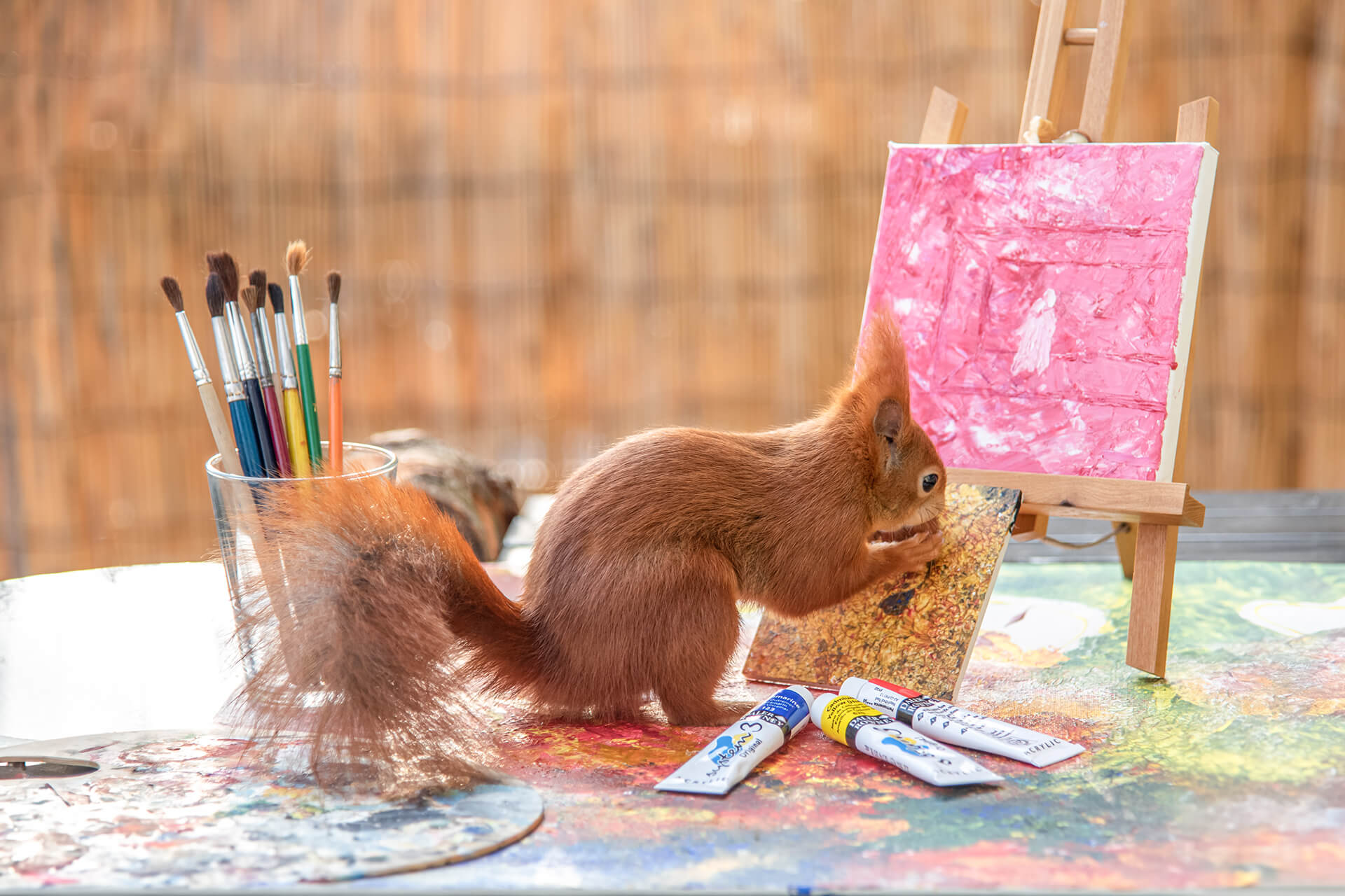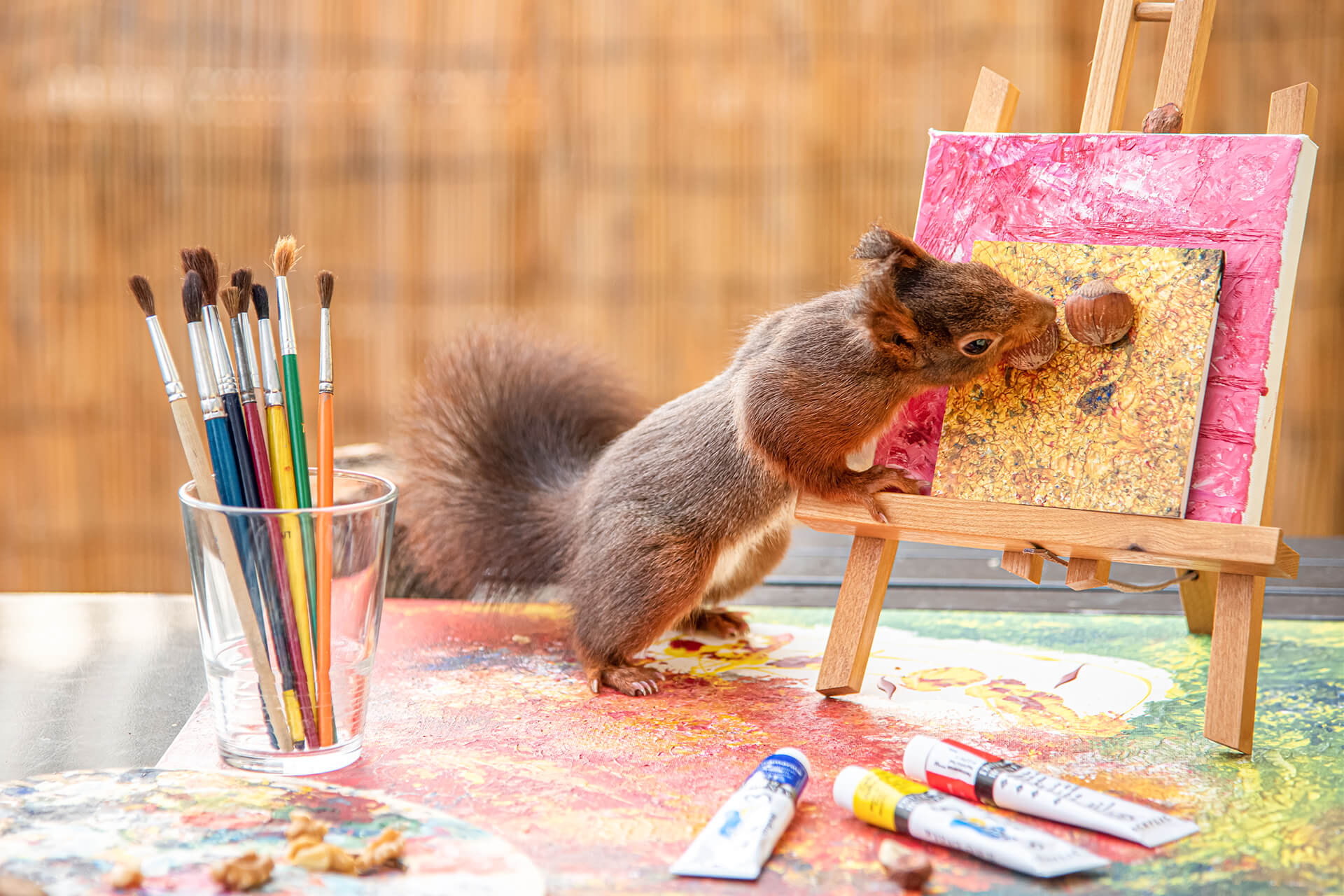In jedem Foto steckt ein Stück Magie und ganz viel Liebe: Liebe zu den Tieren, zur Kunst und zum Leben. In sieben Monaten sind rund 5.000 Bilder und 100 Videos entstanden, sechs verschiedene Eichhörnchen kamen regelmäßig zu Besuch und genossen Haselnüsse, Walnüsse und Sonnenblumenkerne.